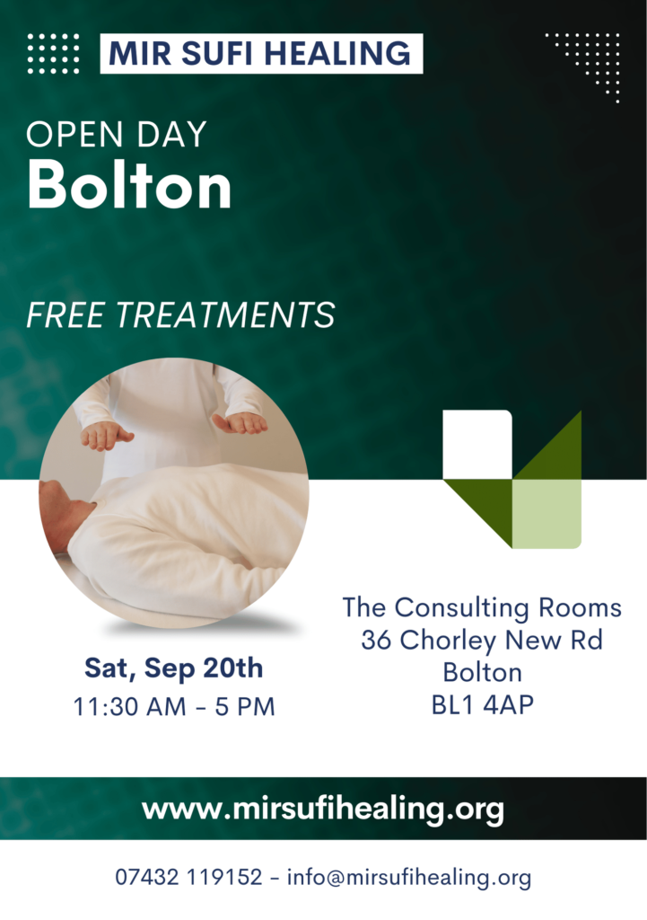 Visit our Open Day and experience Mir Sufi Healing for yourself. Free treatment sessions subject to availability, on a first-come first-served basis. Fill in the form to contact us, or ask any questions.